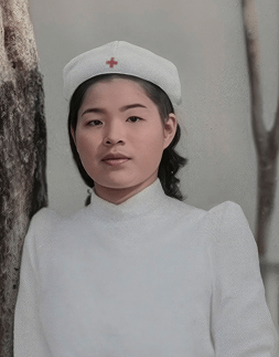 就讀完高等科後進入軍隊的裁縫部工作,17 歲時志願報考看護助手,隨後陸續被派往香港、廣東,過著穿梭在前線與後方、面對死亡的生活…