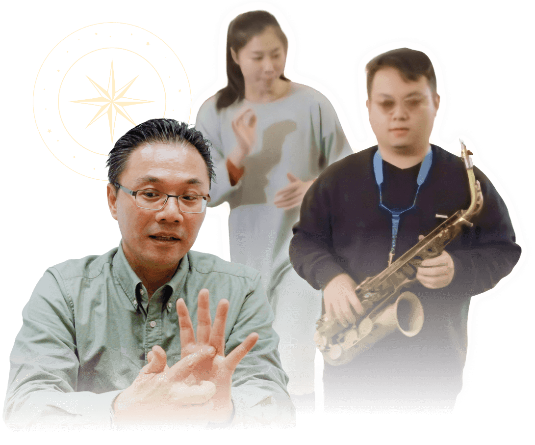 多個日子陪著他們走:讓視障者自信演唱,連揮手走位都反覆磨練;讓身障者勝任命理諮詢,先重建破碎的自信。