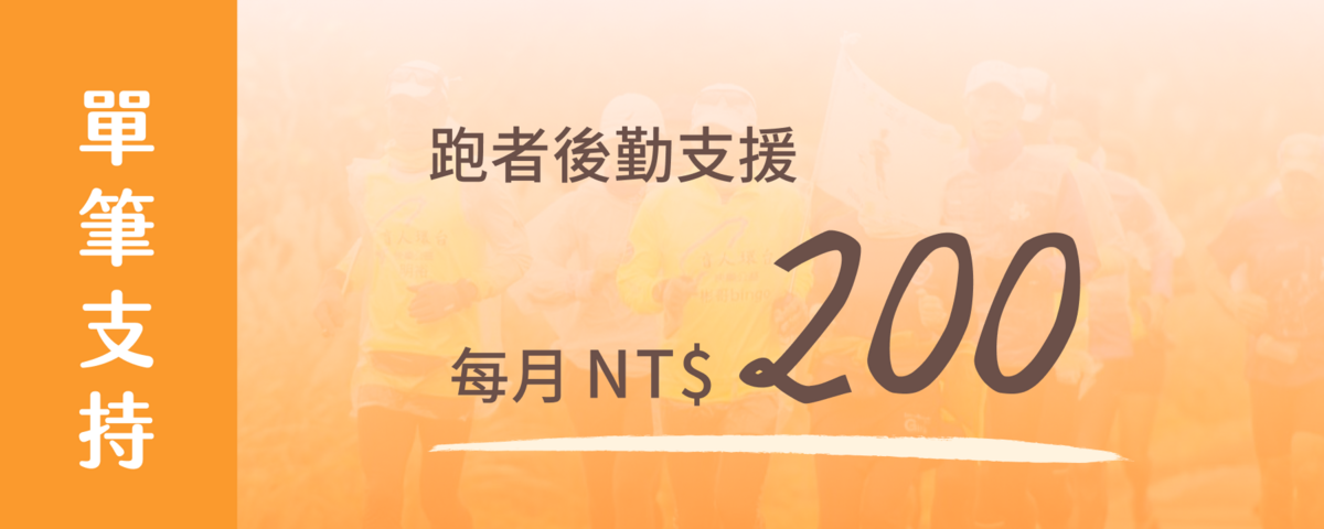 ▮ 感謝您的支持,將讓我們能陪伴弱勢朋友們過個好年,也盲人環台路跑活動能穩定持續的進行。200 元為我們設定的最低金額,歡迎於加碼支持欄位,提高捐款金額。