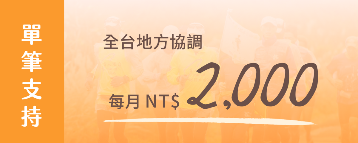 ▮ 感謝您的支持,將讓我們能陪伴弱勢朋友們過個好年,也盲人環台路跑活動能穩定持續的進行。2,000 元為我們設定的最低金額,歡迎於加碼支持欄位,提高捐款金額。