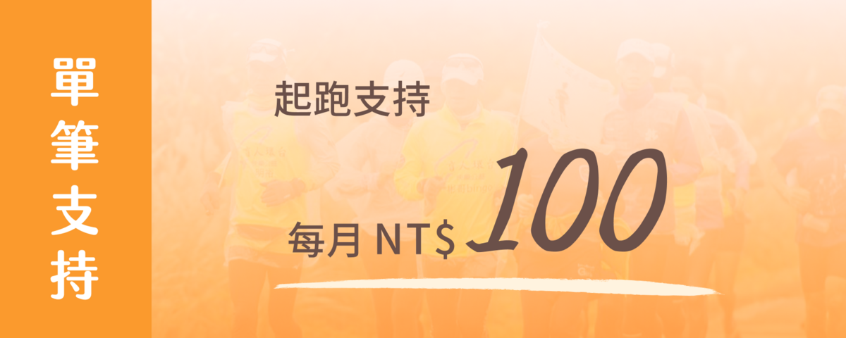▮ 感謝您的支持,將讓我們能陪伴弱勢朋友們過個好年,也盲人環台路跑活動能穩定持續的進行。100 元為我們設定的最低金額,歡迎於加碼支持欄位,提高捐款金額。