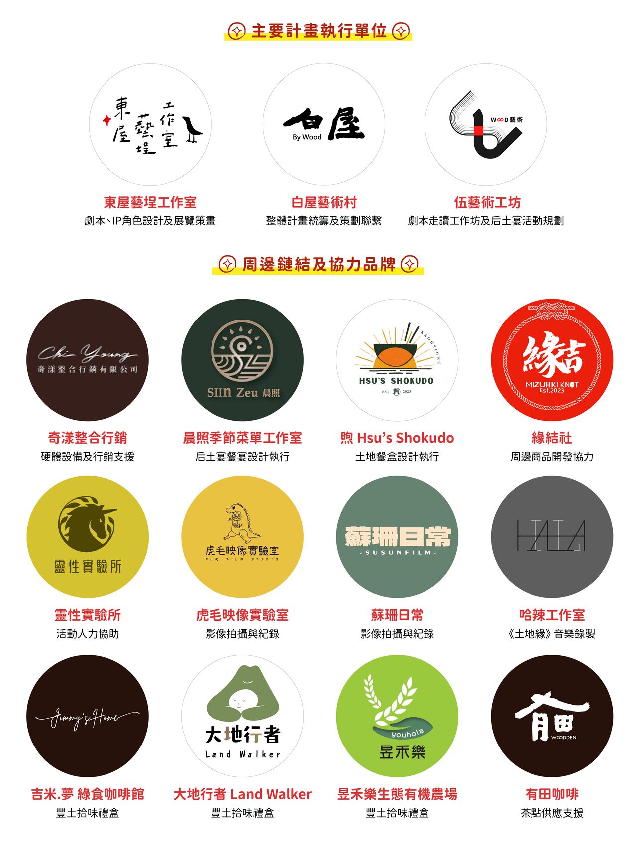 所以在這次的后土祭中,由東屋藝埕工作室的青年藝術家撰寫劇本、設計IP角色,白屋藝術村以地方支持系統的角色統籌整體活動,串聯社區網絡青年一起共創本次的系列活動與周邊開發。