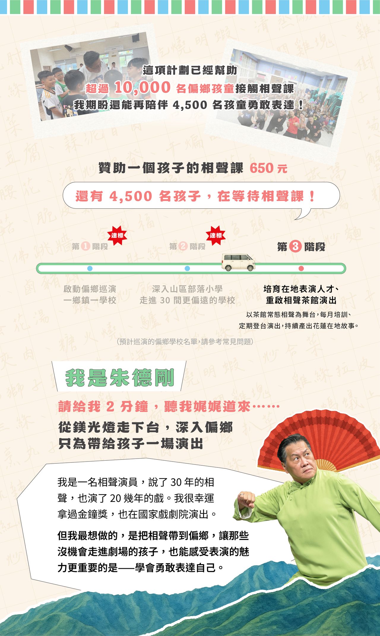 您將每年認養 1 所偏鄉學校,讓整校的孩子勇敢說話 !