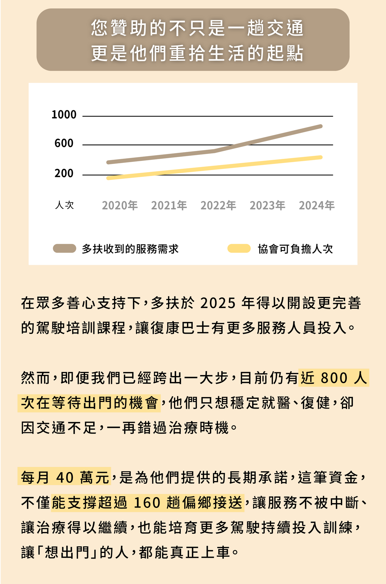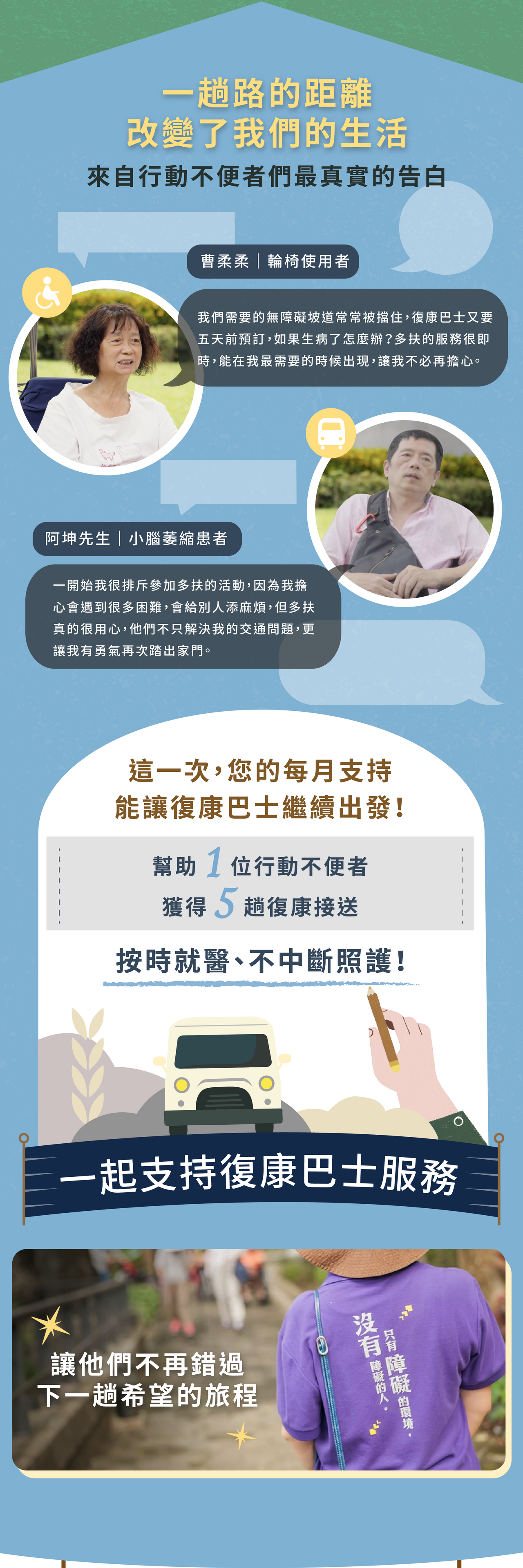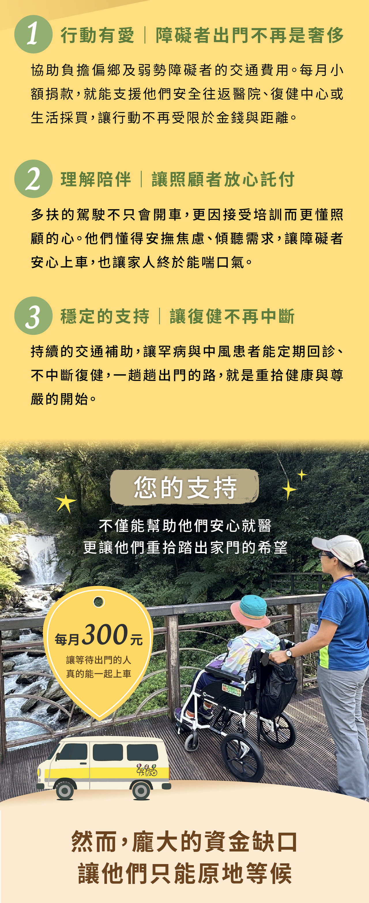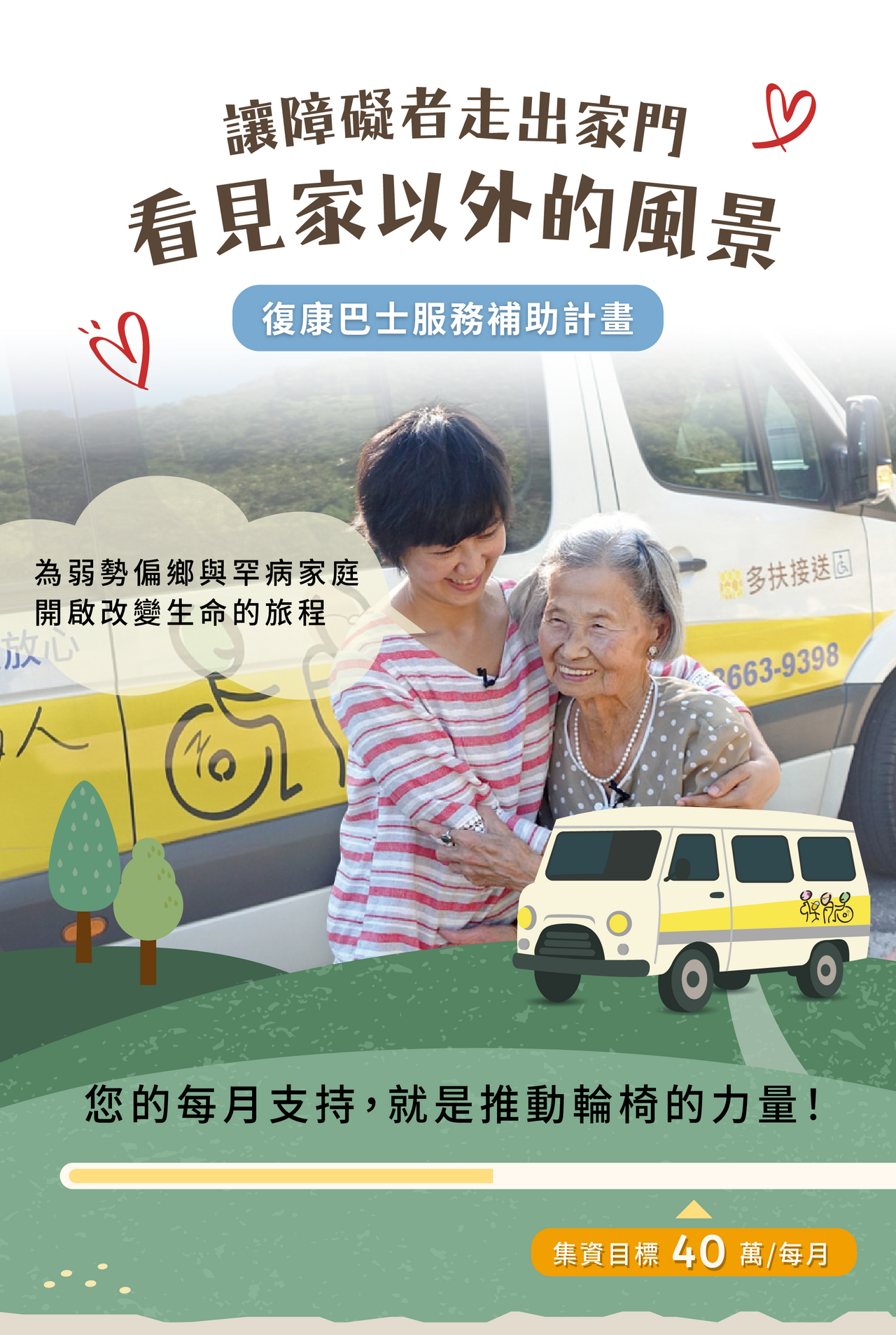 每月 300 |贊助 5 趟復康巴士接送補助