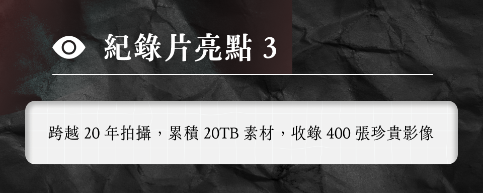 1983 年至 1988 年,台灣總共發生 4043 次陳抗活動,273 次社會運動。台灣在那時代,正積極地進行社會轉型與民主化。這三部紀錄片跨越 20 年拍攝,使用 400 餘張歷史照片與紀實攝影作品,累積 20TB 的拍攝檔與影音素材。透過攝影師們的觀察,以照片為見證,回望台灣 1980 到 2000 年真實走過的歷史軌跡。