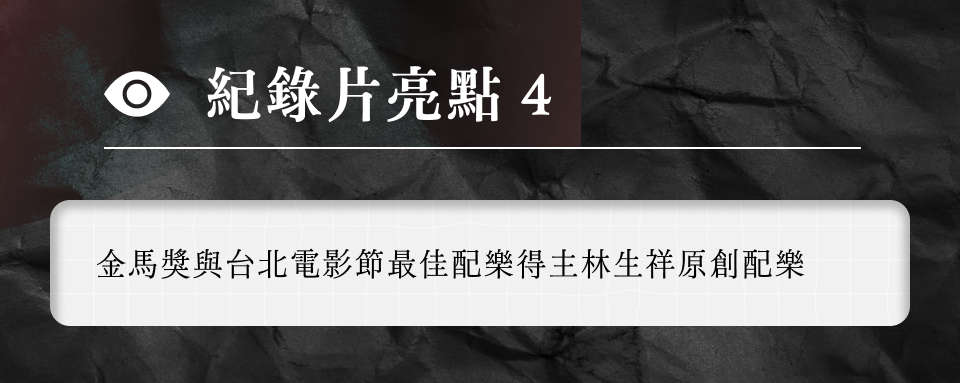 林生祥認為,配樂除了襯托影像、營造情緒外,也應具有立體的樣貌與旋律性,成為與畫面對話、甚至能獨立存在的作品。因此在本專輯中,他與老搭檔們:吉他手大竹研、貝斯與鍵盤手早川徹、鼓手福島紀明、吹管黃博裕、口琴手藤井俊充等共同編曲、演奏,交織出豐富的層次,讓音樂成為影像敘事的重要支撐。