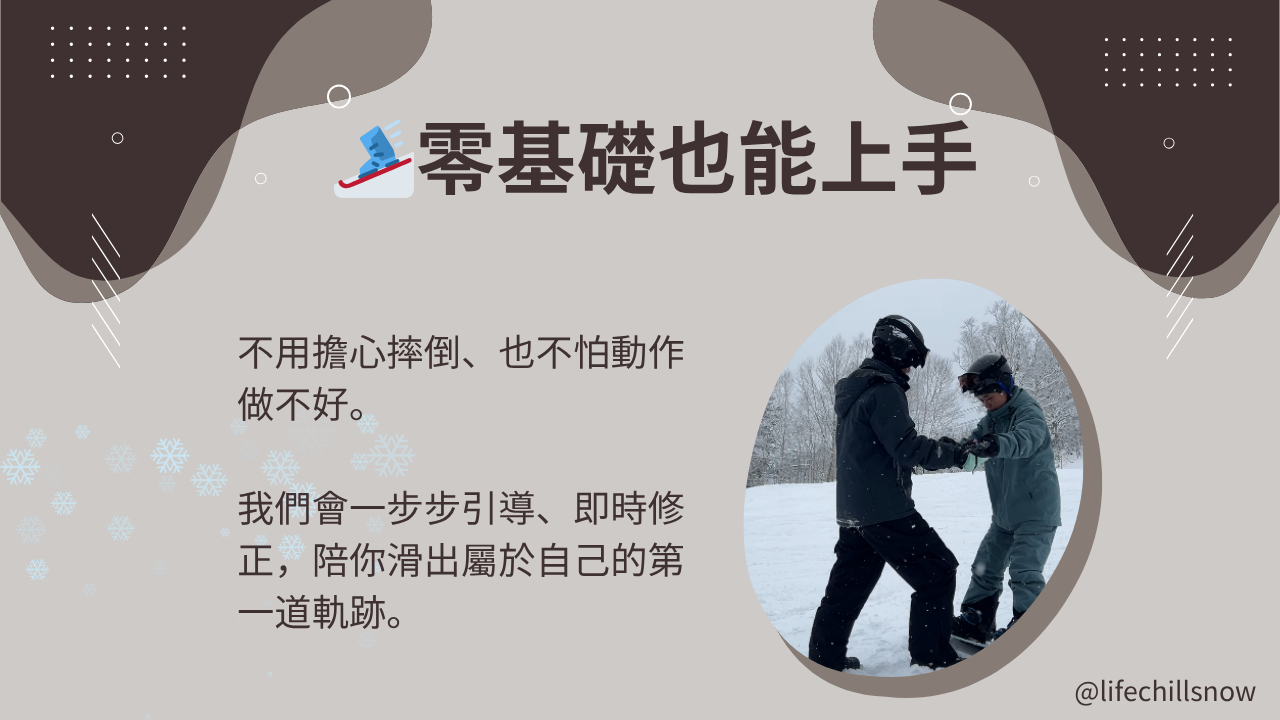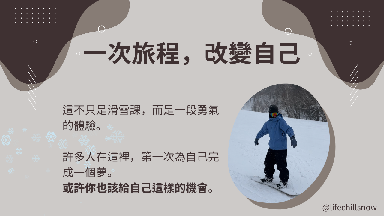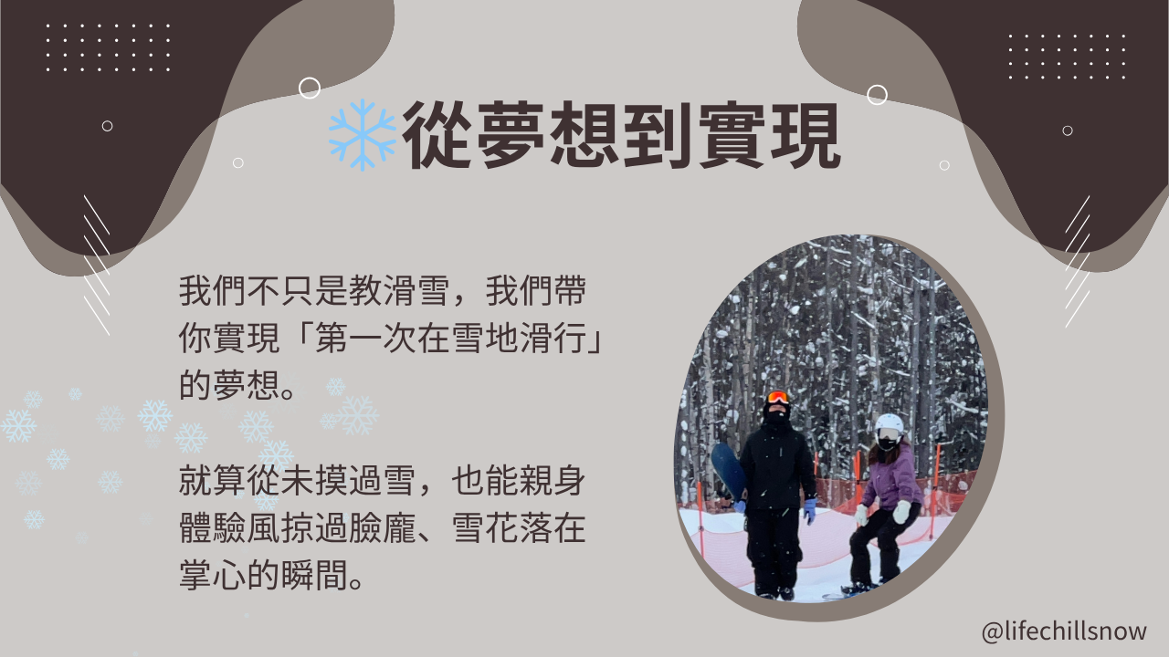 LIFECHILLSNOW 的滑雪教學,不只是一堂課,更是一趟 圓夢之旅。