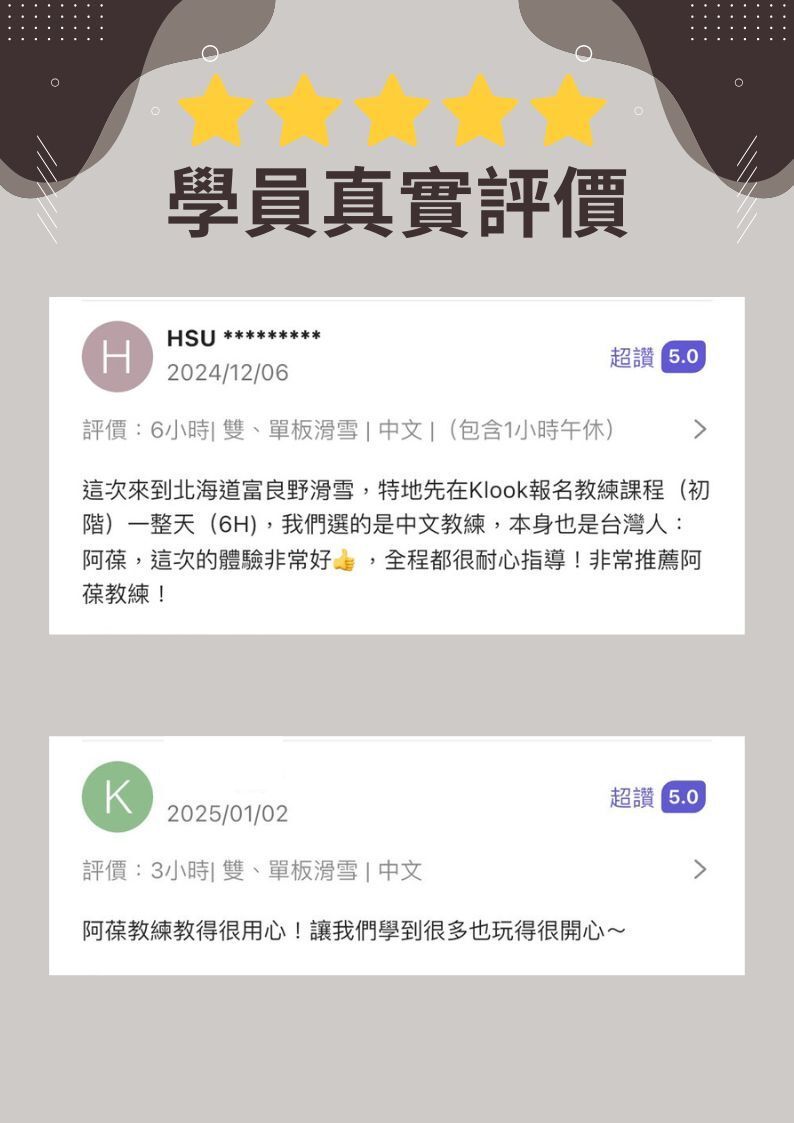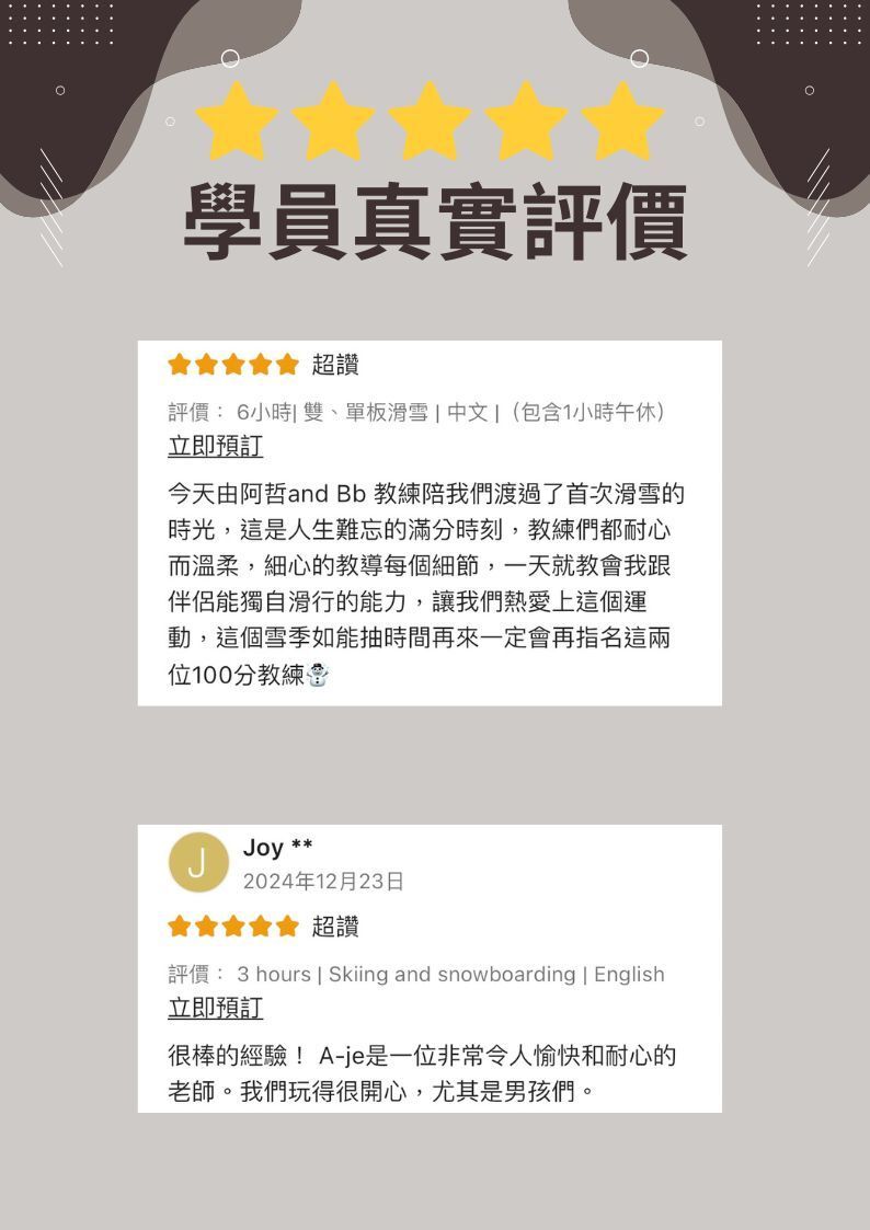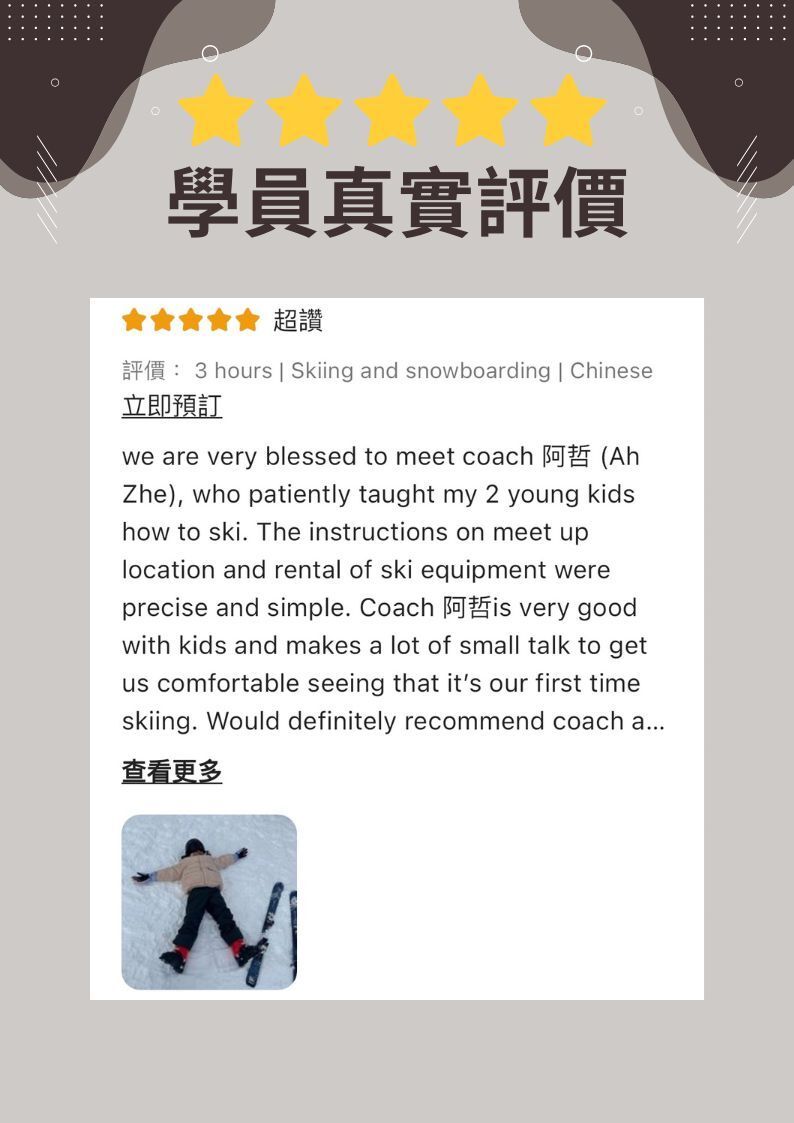 - ⛷ 半天(3 小時)團體滑雪體驗課 1 次