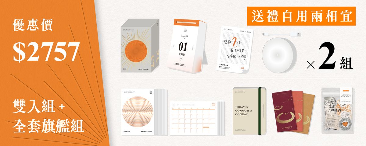 2026 好日曆|日出光暈漸層 德國馬諦斯紙材 2026 好日曆|台灣製作 生活感性 2026 好日曆|台灣製作 是對品質的堅持 好日曆與你的 2026|台灣製作 生活感性 好日曆與你的 2026|56 萬粉絲推薦 好日曆原創生活指南《好日曆與你的 2026》 不只是一份日曆 是希望能與你一起改善文字創作者生態的邀請 讓我們在守護文字創作的同時,也獲得 2026 最美日曆的祝福與回饋好日曆與你的 2026|一體成型簡約立架 ✕ 手工綁繩吊掛  可以是掛在牆上的一角、擺在桌上的一隅 無論哪種型態,都是讓你抬起頭來就能發現的美麗提醒好日曆與你的 2026|全新升級 日曆加強撕限,今年的日曆還有個很重要的進步! 為了改善大家在撕日曆的體驗 特別請印刷廠選了好幾種版本、一版一版的試 終於選到能夠輕鬆撕下、不易殘留的撕線加工法好日曆與你的 2026|2026 限定企劃「年末倒數頁」 在 2025 年底加碼 7 天日曆,讓好日曆陪你一起回顧與倒數好日曆與你的 2026|2026 限定企劃「年末倒數頁」 在 2025 年底加碼 7 天日曆,讓好日曆陪你一起回顧與倒數
