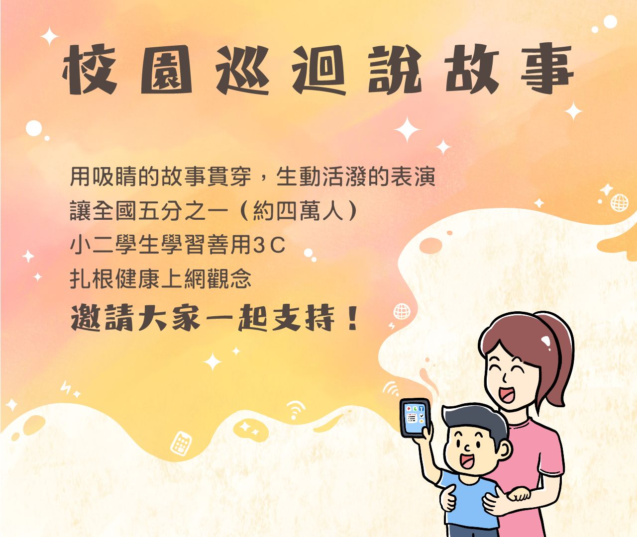 健康上網說故事活動從105年起,從台北及桃竹苗地區開始,至今辦了超過420場活動,發起募資專案,希望關心這個議題的師長,能夠有機會小額支持,讓更多地區更多孩子能夠透過健康上網說故事活動加深3C素養。