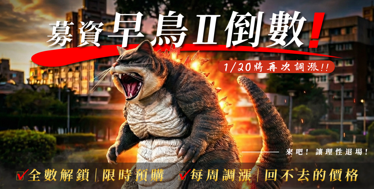 為了回饋最早相信貓吉拉的人,我們決定在 1/31 募資結束前——