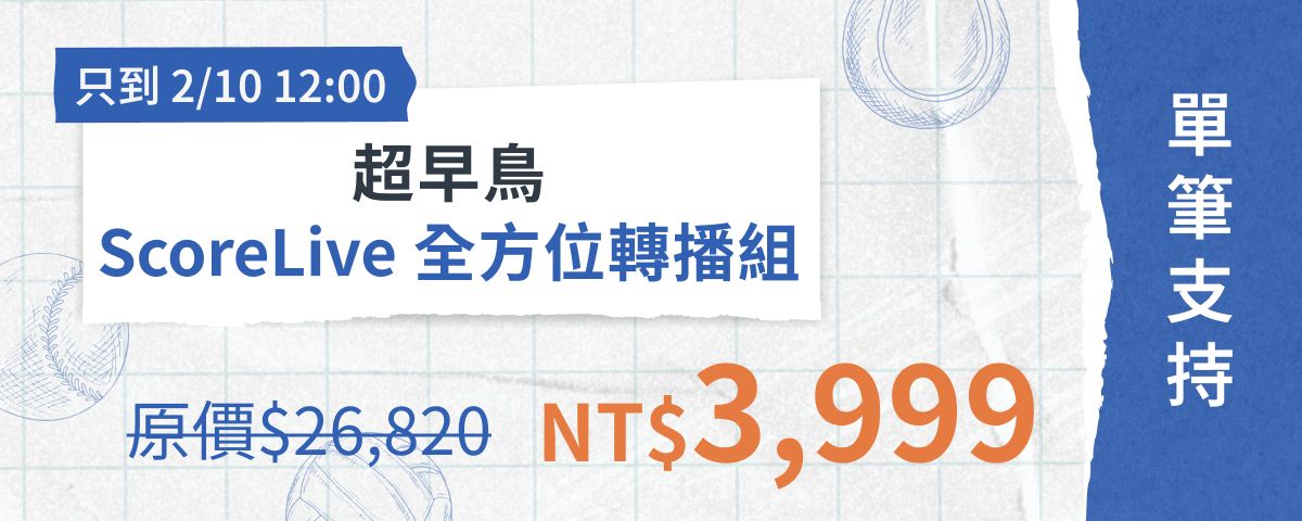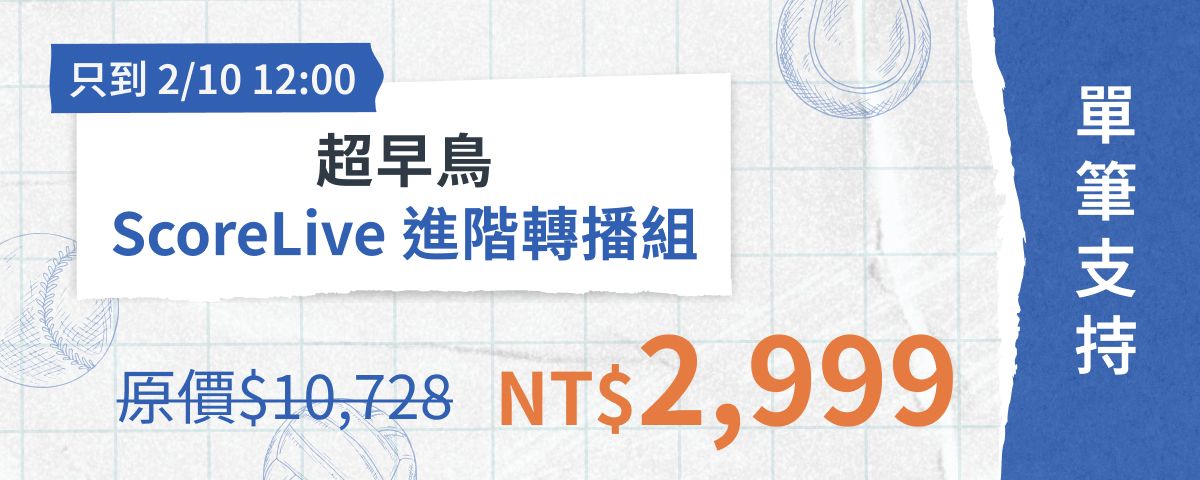 您將能獲得五項運動直播永久授權;另外 ScoreLive 將捐贈一個帳號授權給基層球隊,讓每位在場上努力的孩子都能被看見。