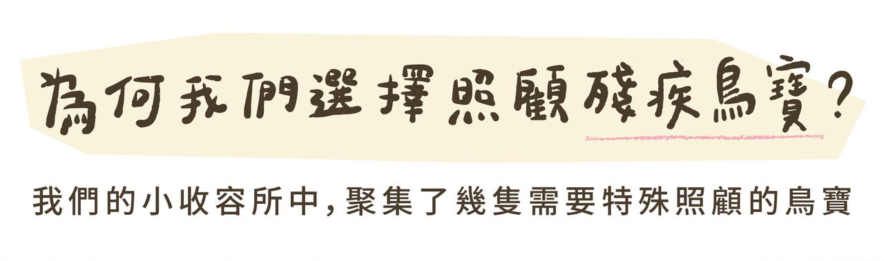 目前全台提供殘疾鳥類專業照護的機構屈指可數,許多鳥寶面臨被安樂死或被長期關籠的命運。