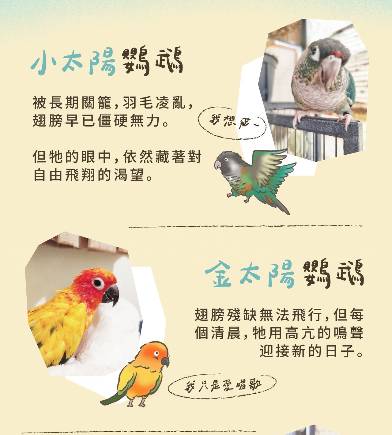 據台灣動物保護協會統計,每年有超過500隻鳥類被棄養,其中不少為殘疾鳥或需要特殊照顧的鳥寶。