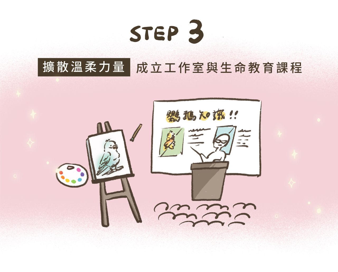 我們希望成立一個完整的工作室,透過鳥類繪畫課程、飼育知識講座,將愛與溫柔傳遞給更多人。