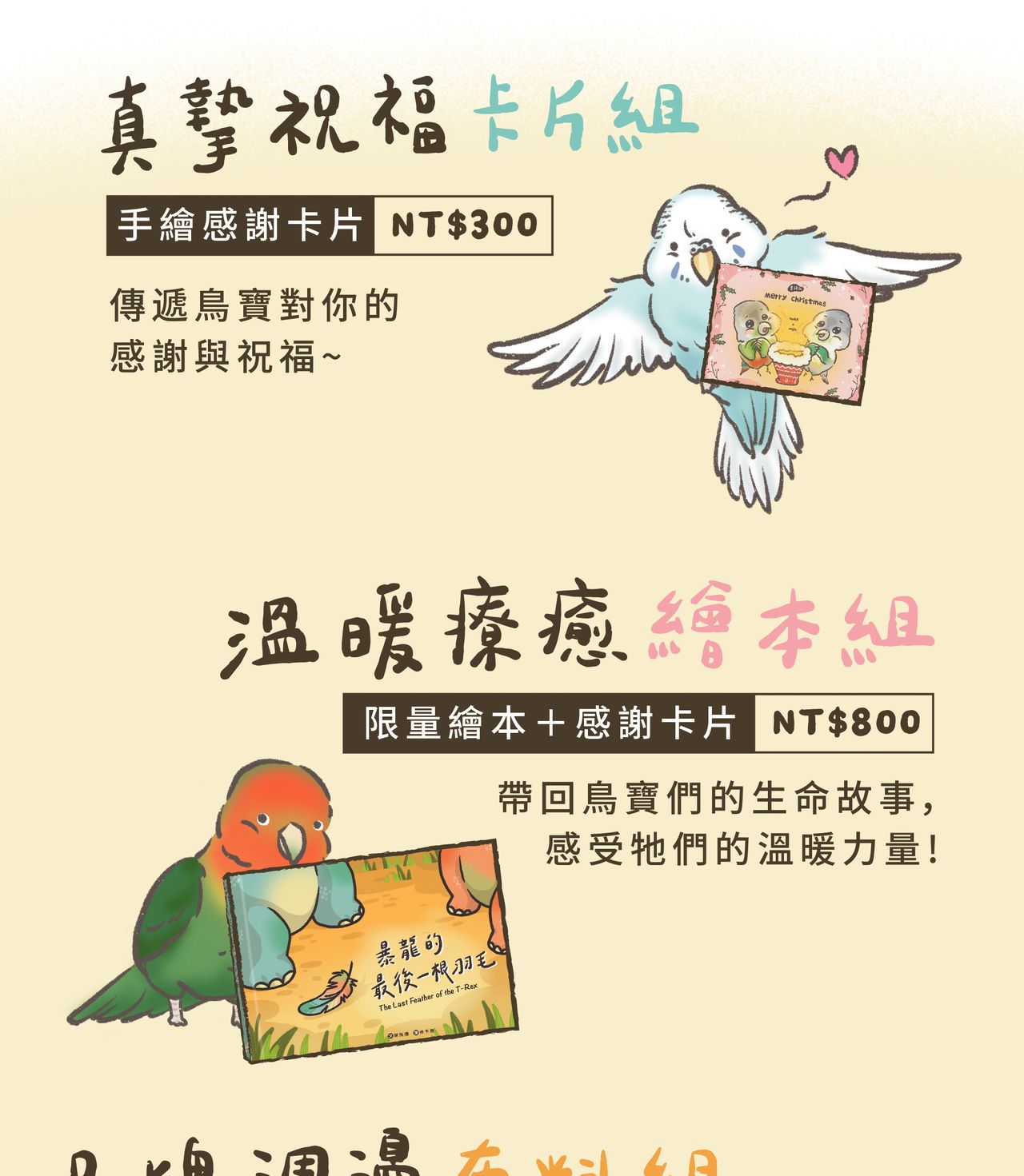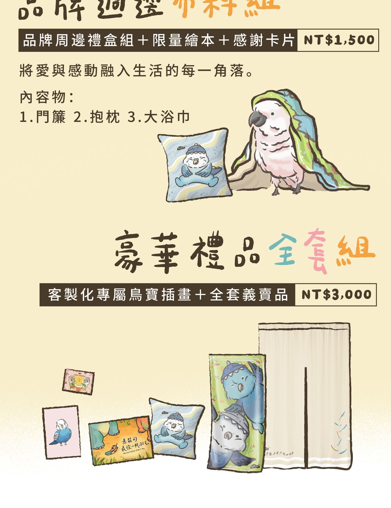 品牌周邊商品則包括手繪插畫明信片、客製化鳥寶插畫等,為支持者提供溫馨的收藏。