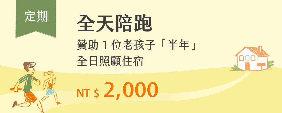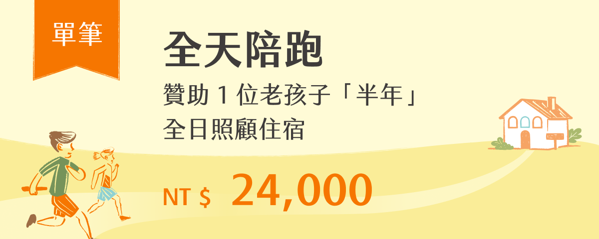 【全天陪跑】贊助 1 位老孩子「半年」全日照顧住宿