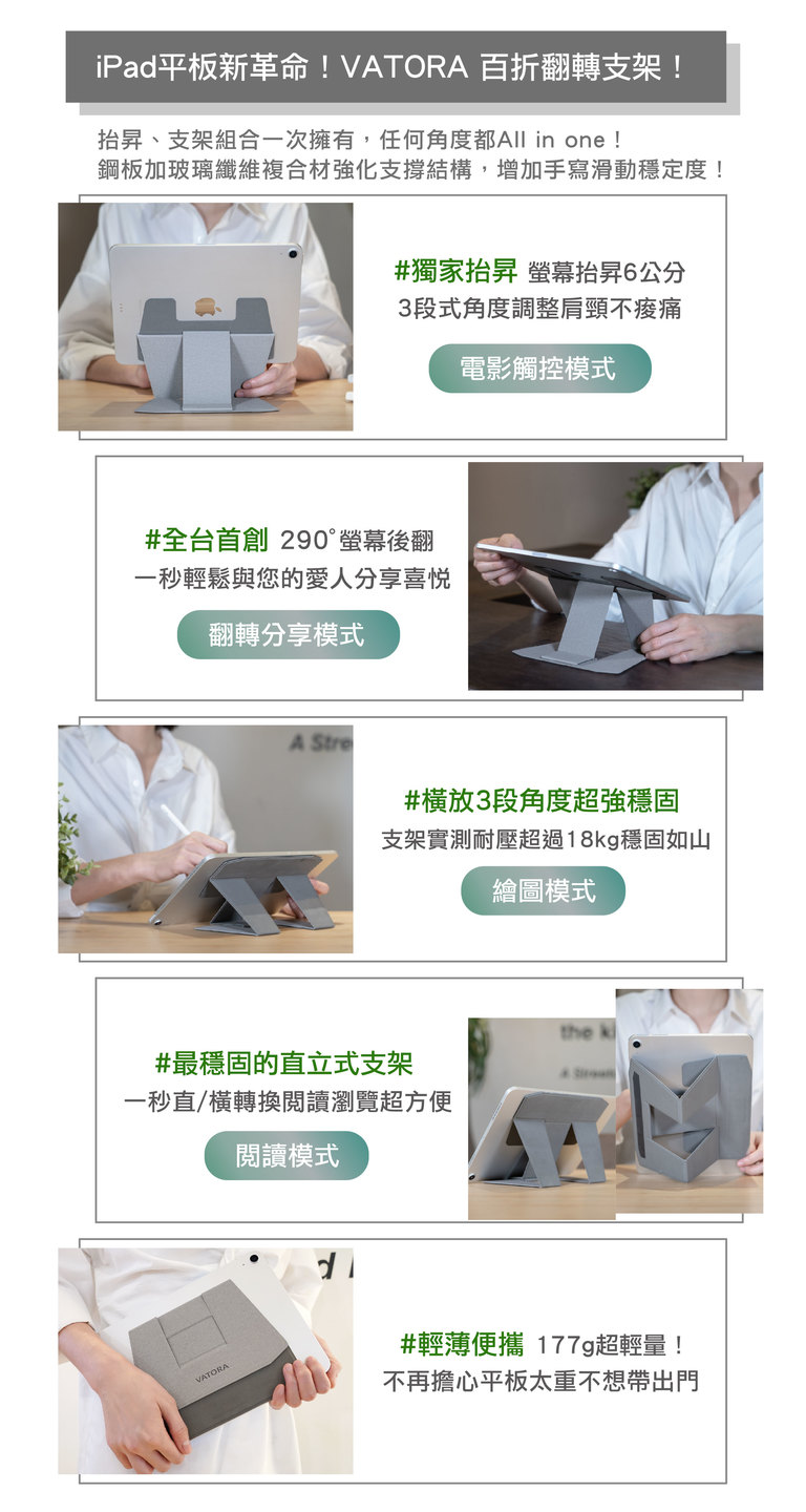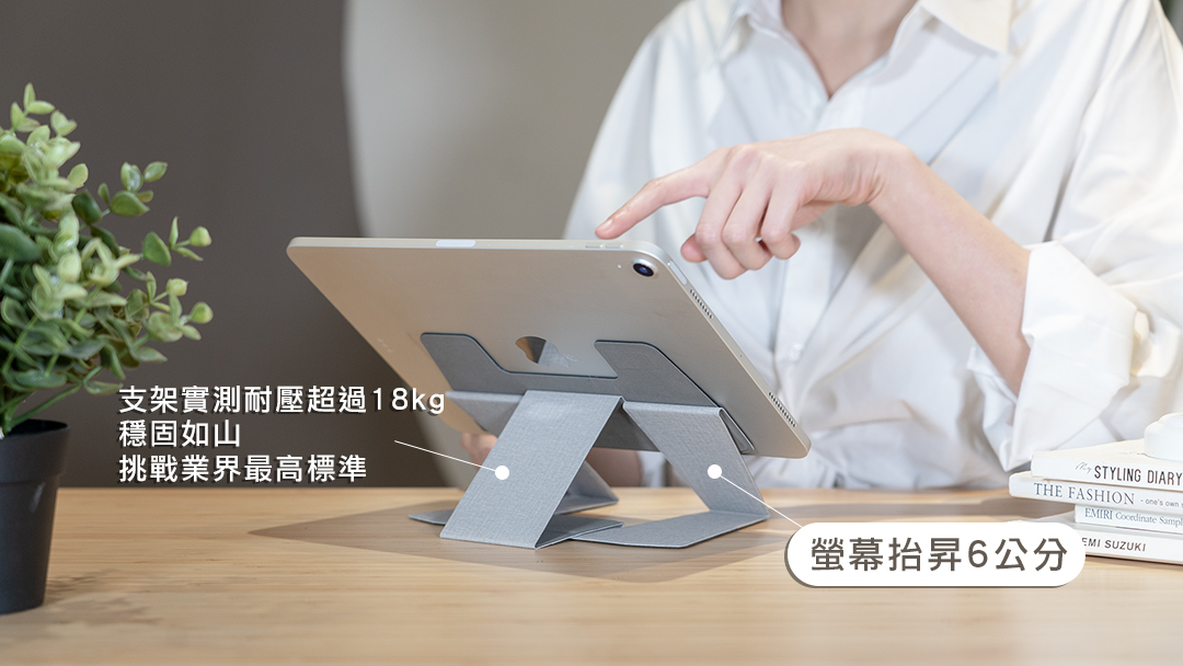 ▋百變角度橫豎皆可,1 秒把平板抬昇 6 cm,再翻轉 290°!