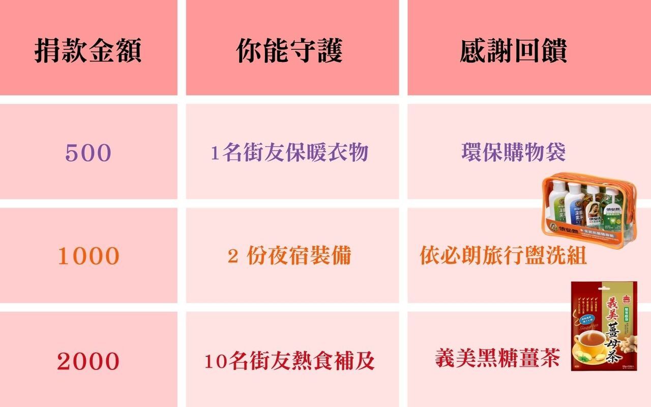 捐款500元將提供1名街友保暖衣物