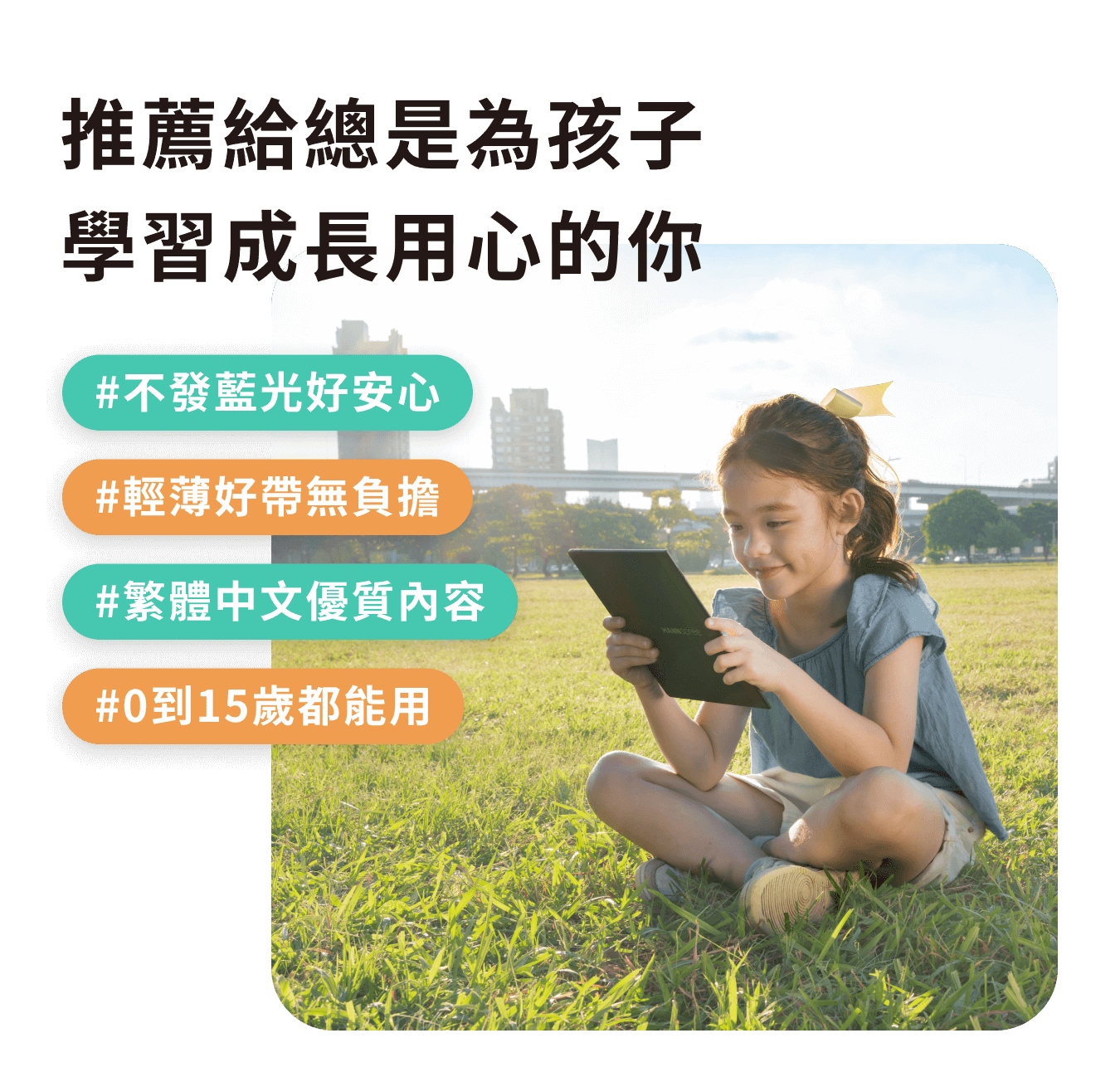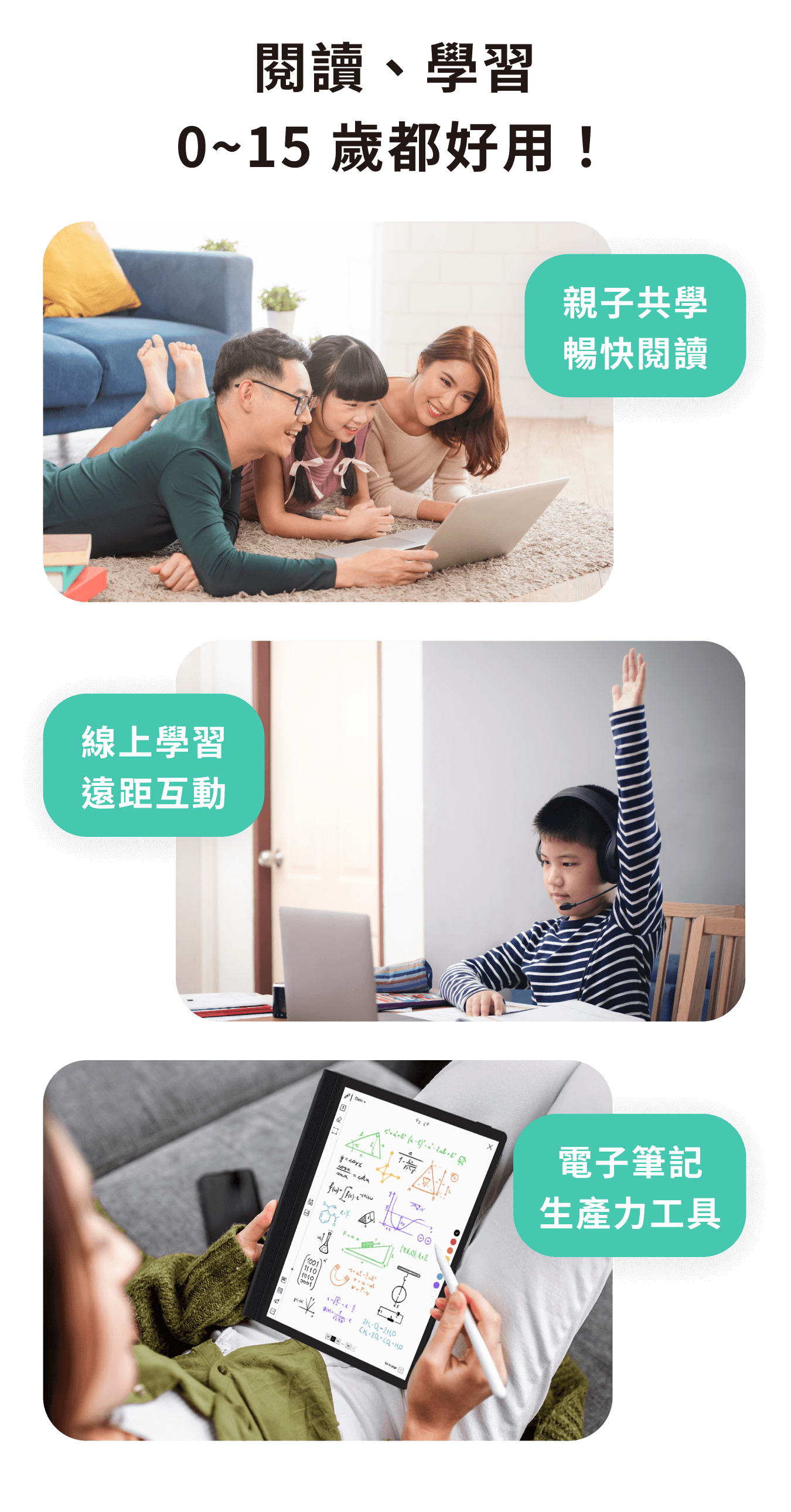 0-15 歲兒童每月超過 5,000 本多元豐富的互動電子書與影音內容。